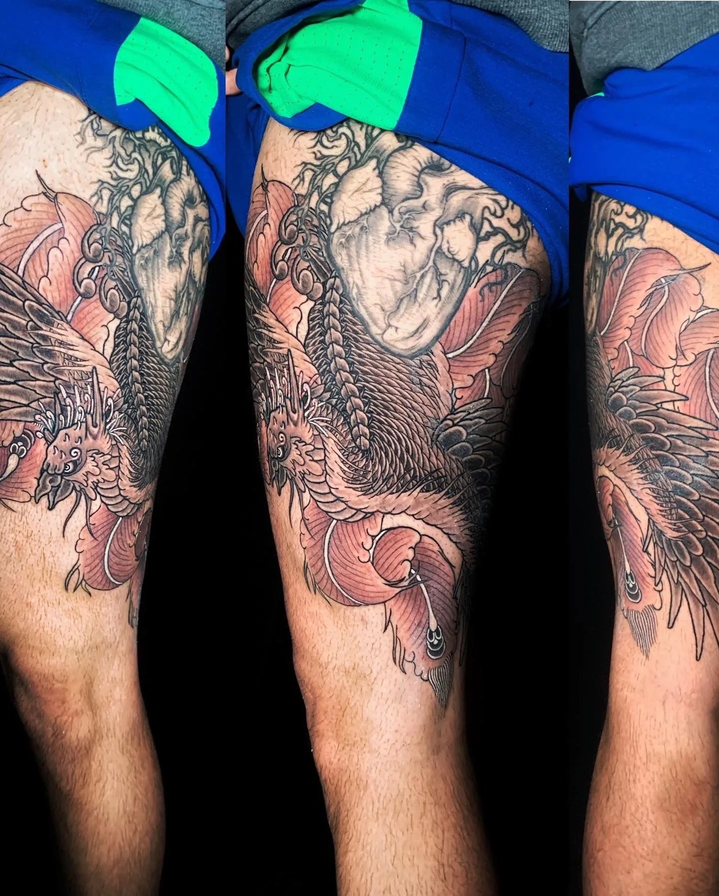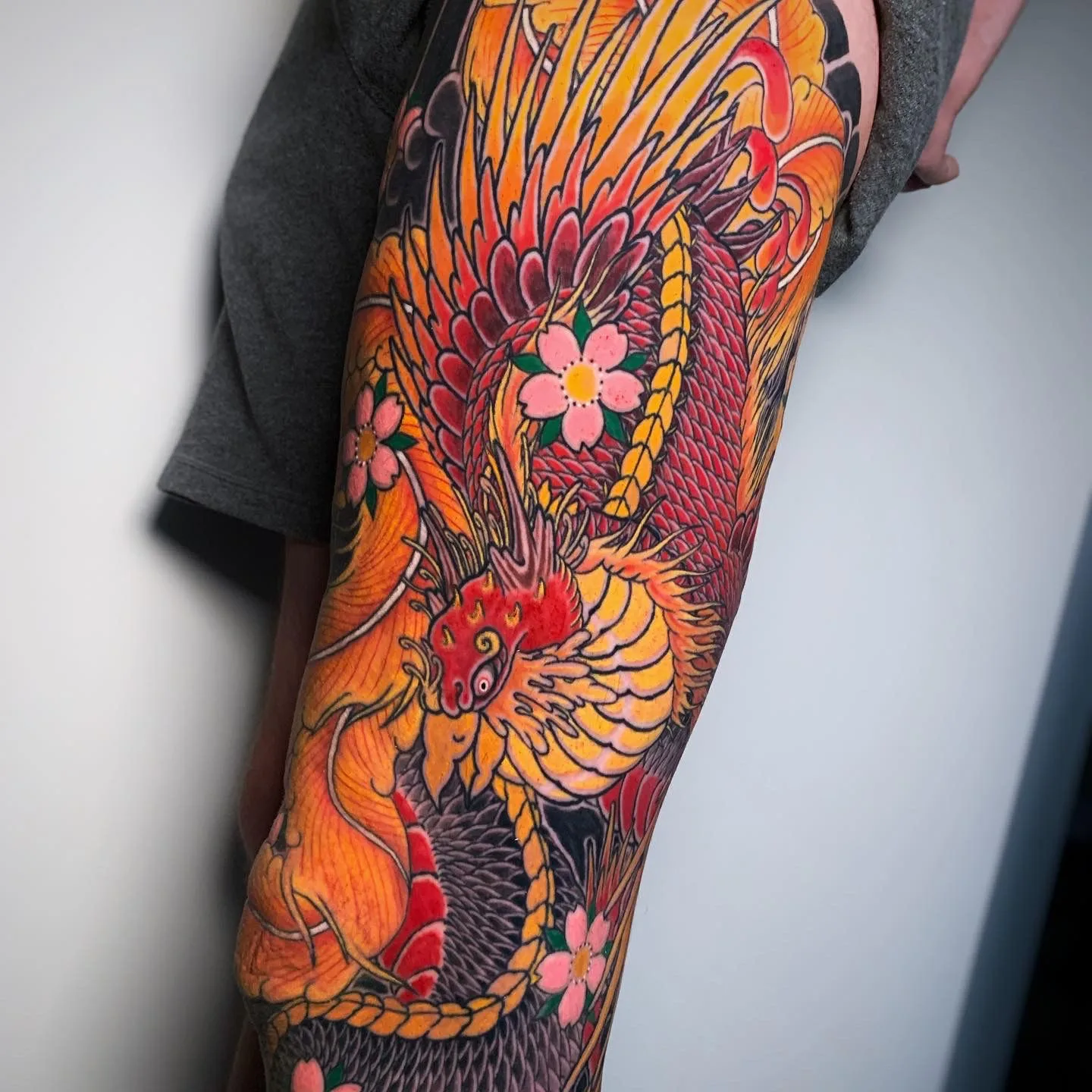 Today, Marcus focuses exclusively on large-scale Japanese and Asian tattoos — full sleeves, backs, and bodysuits that celebrate classic motifs such as dragons, koi, tigers, phoenixes, deities, warriors, and mythic creatures. Every design is drawn by hand and composed to flow naturally with the body, combining deep respect for cultural symbolism with modern craftsmanship.